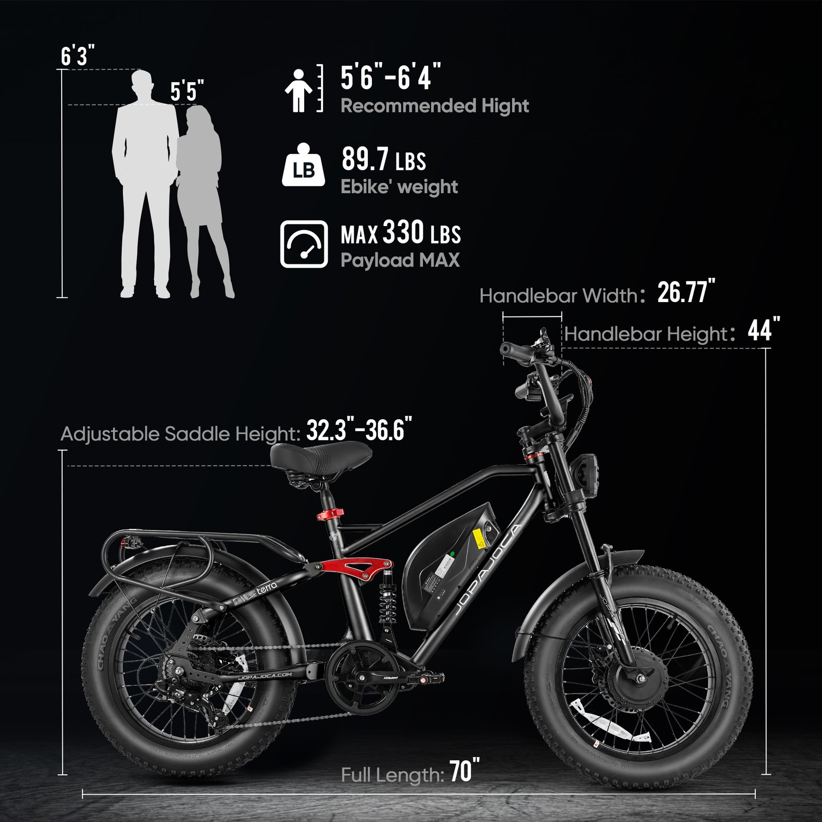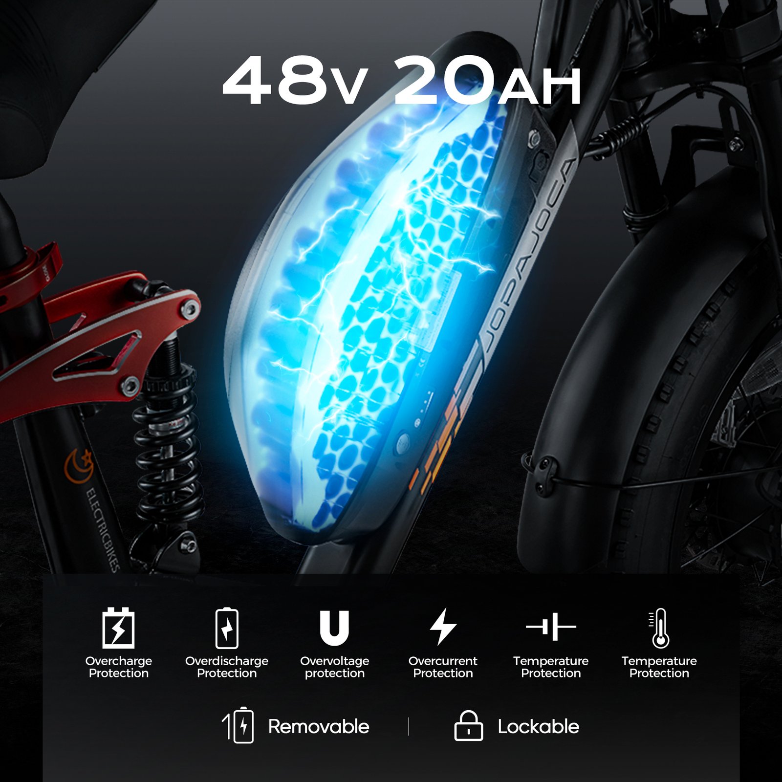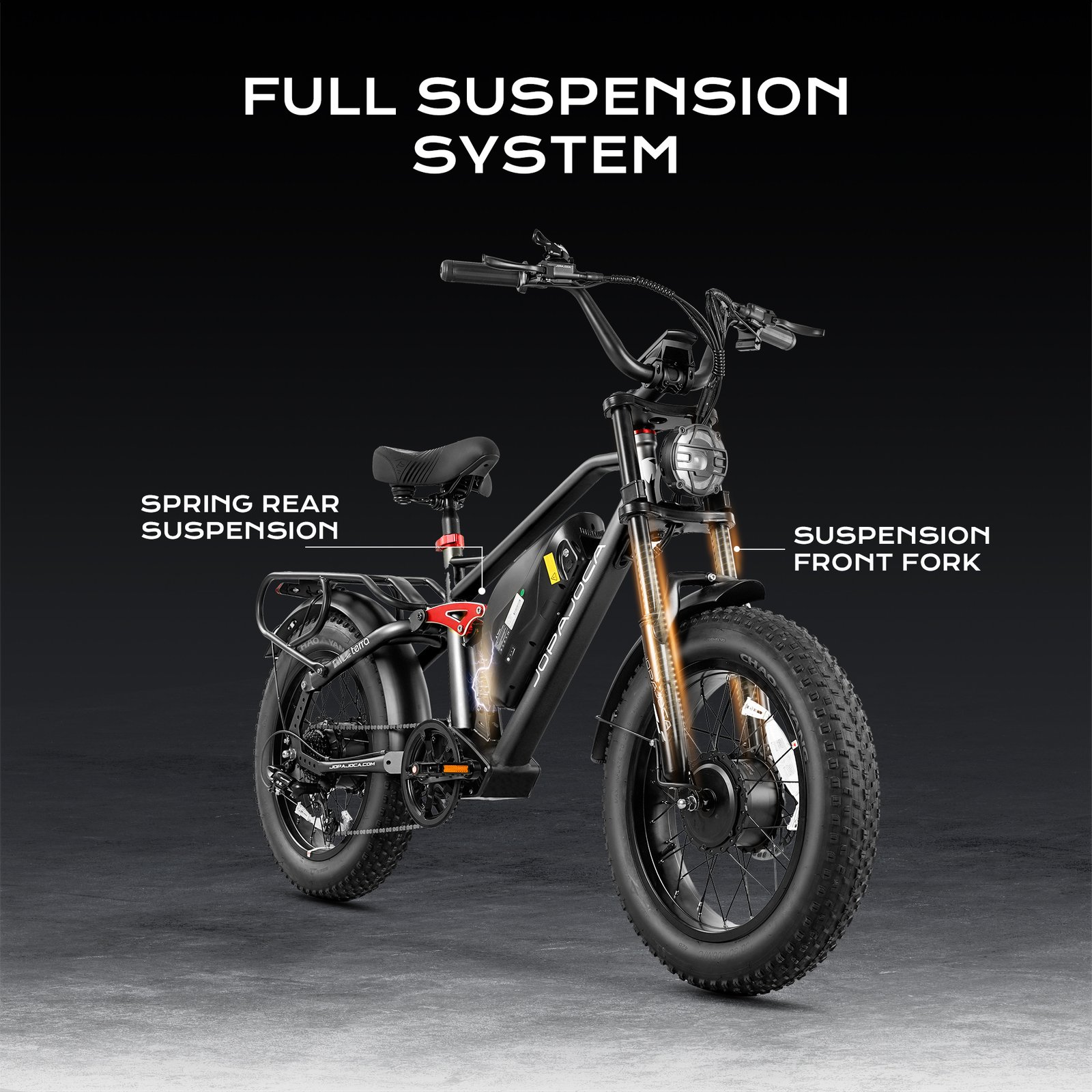 The Eahora Terra II Electric Bike is engineered for riders who want extreme torque, long-range capability, and full suspension comfort. Designed for off-road trails, gravel routes, and powerful urban commuting, this 1000W fat tire eBike delivers serious performance with premium components.