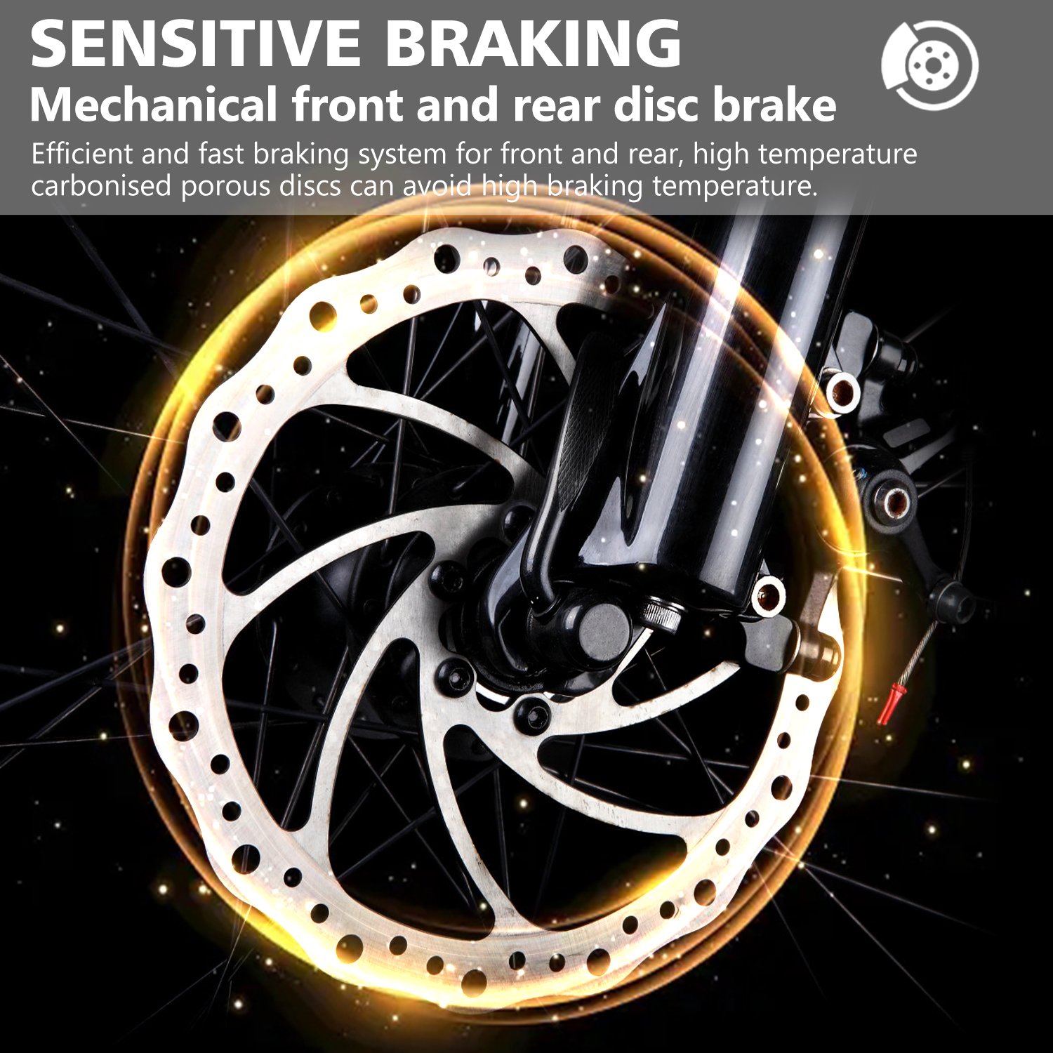 Dual Suspension: The combination of a hydraulic front fork and rear spring absorber soaks up bumps for a “cloud-like” ride.